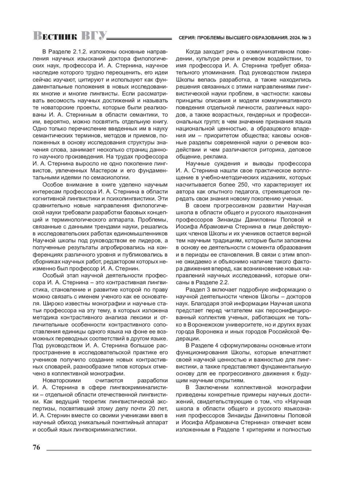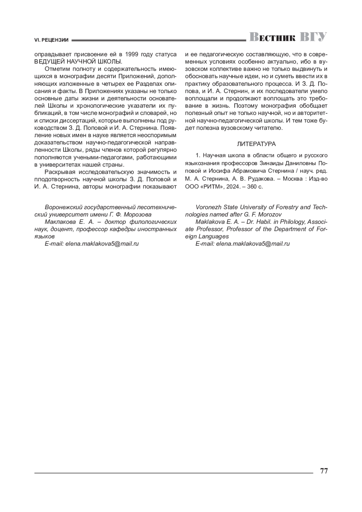 1. Научная школа в области общего и русского языкознания профессоров Зинаиды Даниловны Поповой и Иосифа Абрамовича Стернина / науч. ред. М. А. Стернина, А. В. Рудакова. - Москва: Изд-во ООО “РИТМ”, 2024. - 360 с.