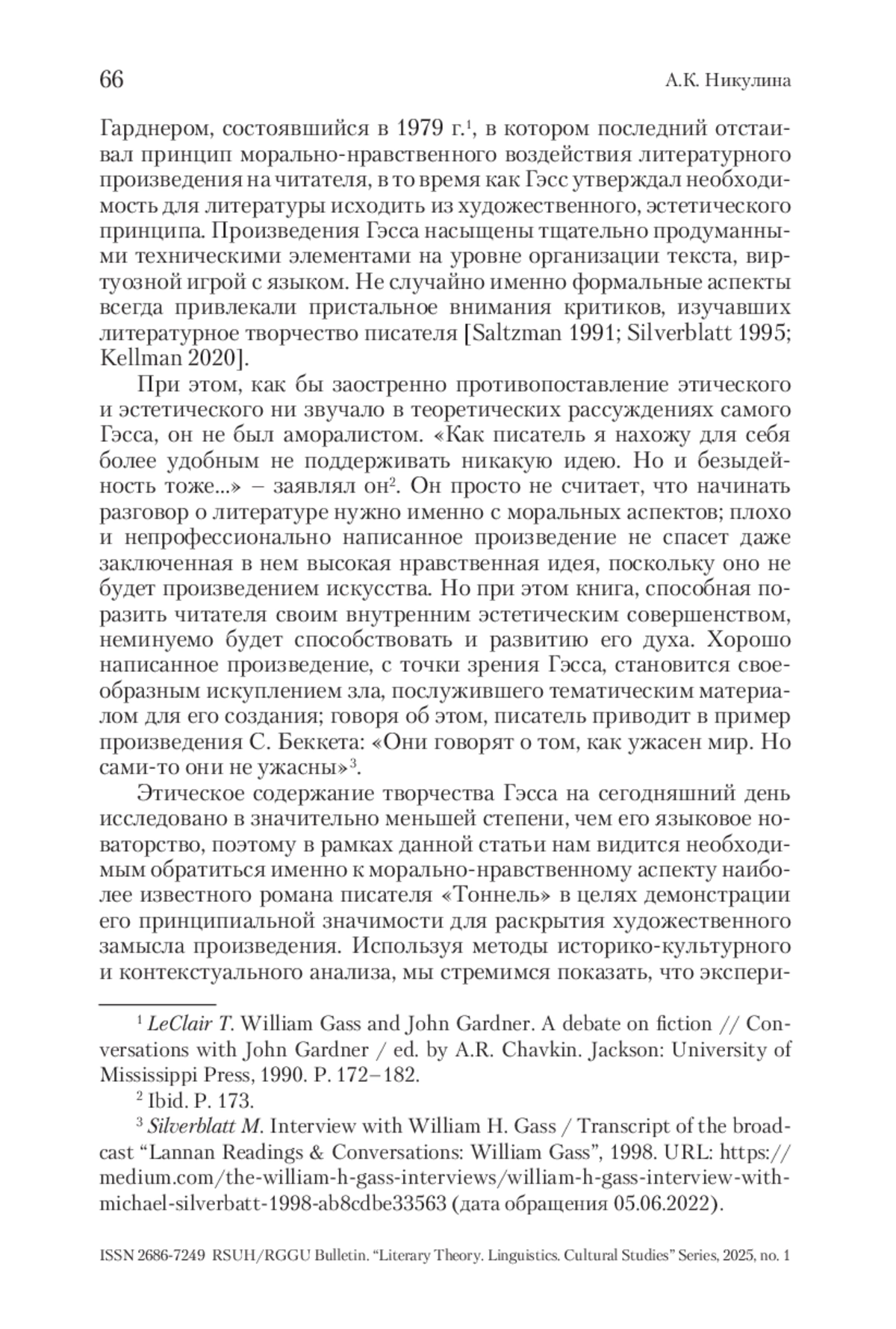 7. Saltzman 1991 - Saltzman A.M. Language and conscience // The Review of Contemporary Fiction. Fall 1991. URL: https://medium.com/the-william-h-gassinterviews/william-h-gass-interviewed-by-arthur-m-saltzman-1991-40d86feafe73 (дата обращения 01.06.2022).