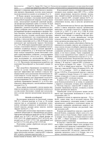 14. Dai X., Xu Y., Lu Y., Dong B. Recognition of the key chemical constituents of sewage sludge for biogas production // RSC Advances. 2017. Vol. 7, iss. 14. P. 2033-2037. DOI: 10.1039/c6ra26180a