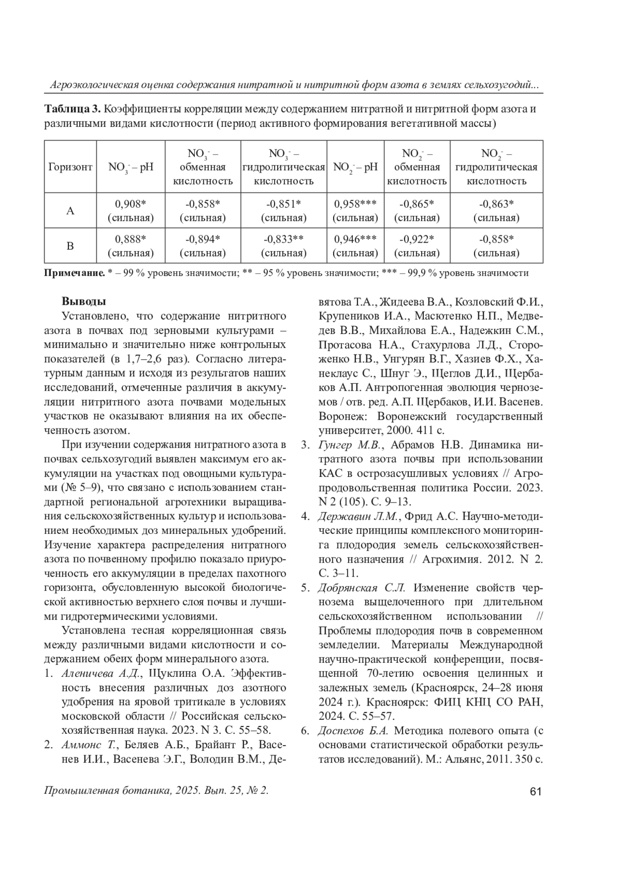 3. Гунгер М.В., Абрамов Н.В. Динамика нитратного азота почвы при использовании КАС в острозасушливых условиях // Агропродовольственная политика России. 2023. N 2 (105). С. 9-13.