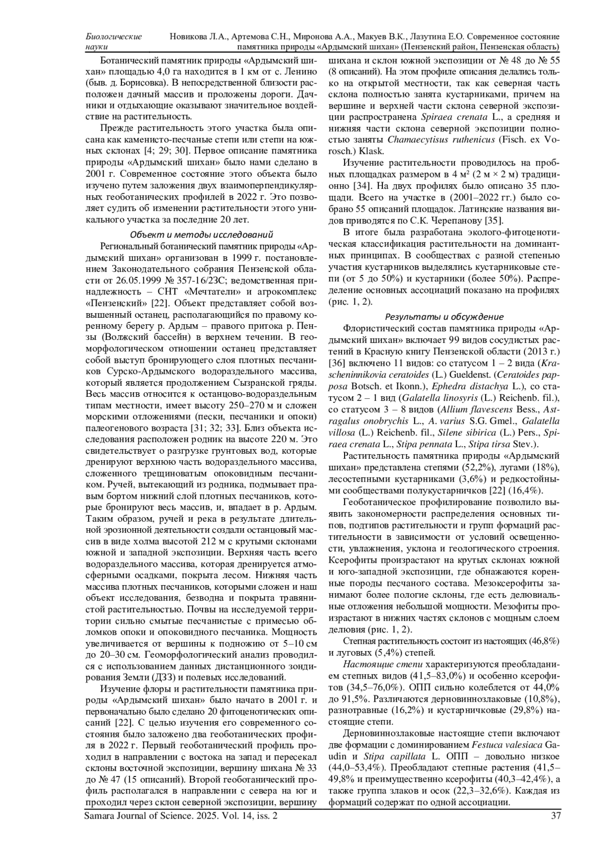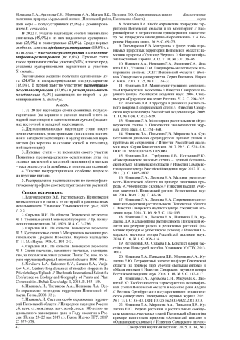 21. 	Новикова Л.А., Артемова С.Н., Макуев В.К., Яковлев Е.Ю. Геоботаническая характеристика псаммофитных степей Пензенской области в бассейне реки Ардым // Вестник Оренбургского государственного педагогического университета. Электронный научный журнал. 2021. № 1 (37). С. 35-47. DOI: 10.32516/2303-9922.2021.37.3 EDN: LCYFWY