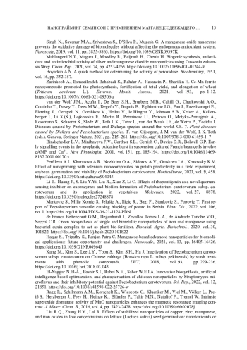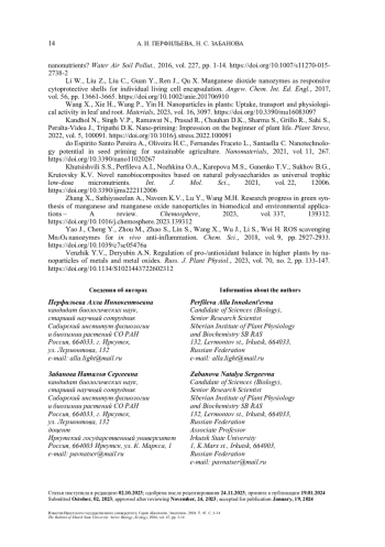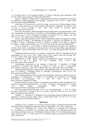 25. 	Venzhik Y. V., Deryabin A. N. Regulation of pro-/antioxidant balance in higher plants by nanoparticles of metals and metal oxides // Russ. J. Plant Physiol. 2023. Vol. 70, N 2. P. 133-147.