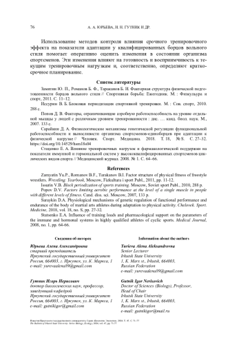 5. 	Стаценко Е. А. Влияние тренировочных нагрузок и фармакологической поддержки на показатели иммунной и гормональной систем у высококвалифицированных спортсменов циклических видов спорта // Медицинский журнал. 2008. № 1. С. 64-66.