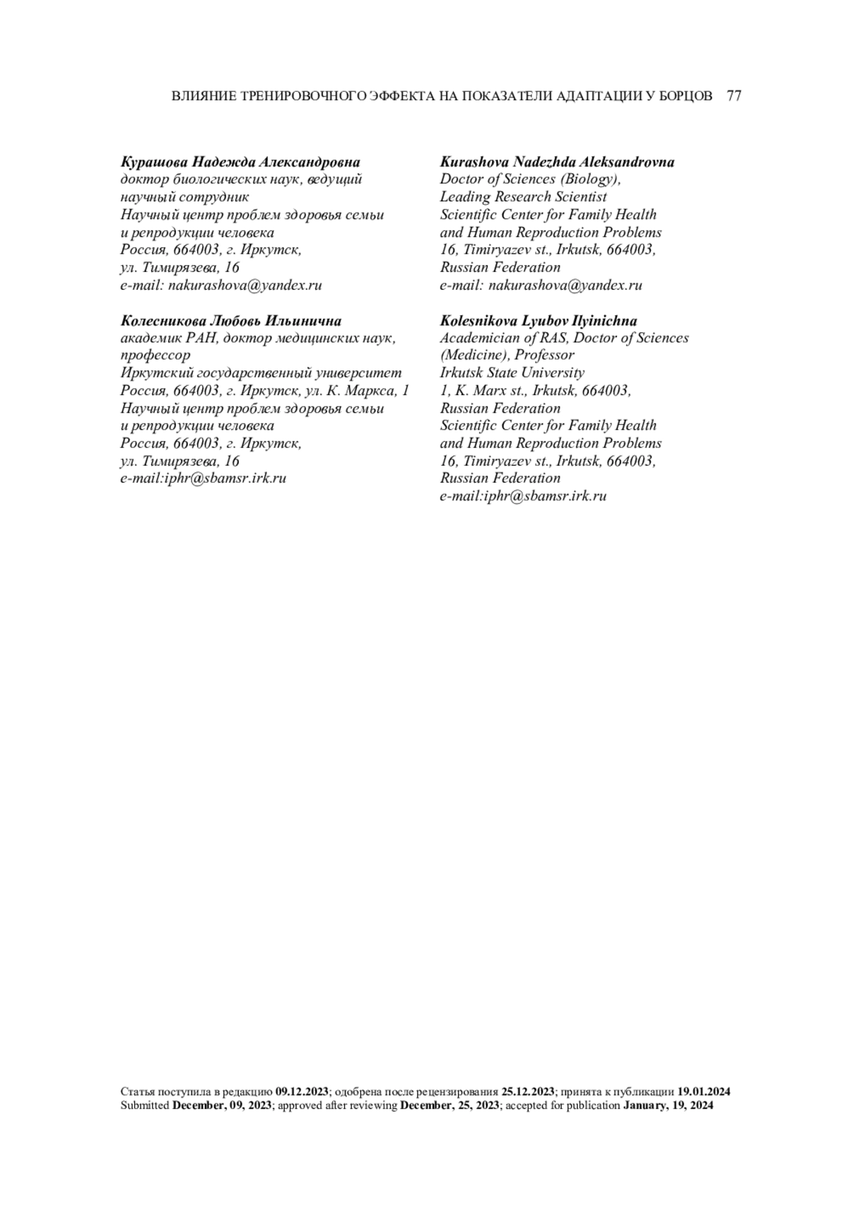 4. 	Сарайкин Д. А. Физиологические механизмы генетической регуляции функциональной работоспособности и выносливости организма спортсменов-единоборцев при адаптации к физической нагрузке // Человек. Спорт. Медицина. 2018. Т. 18, № S. С. 27-32. DOI: 10.14529/hsm18s04