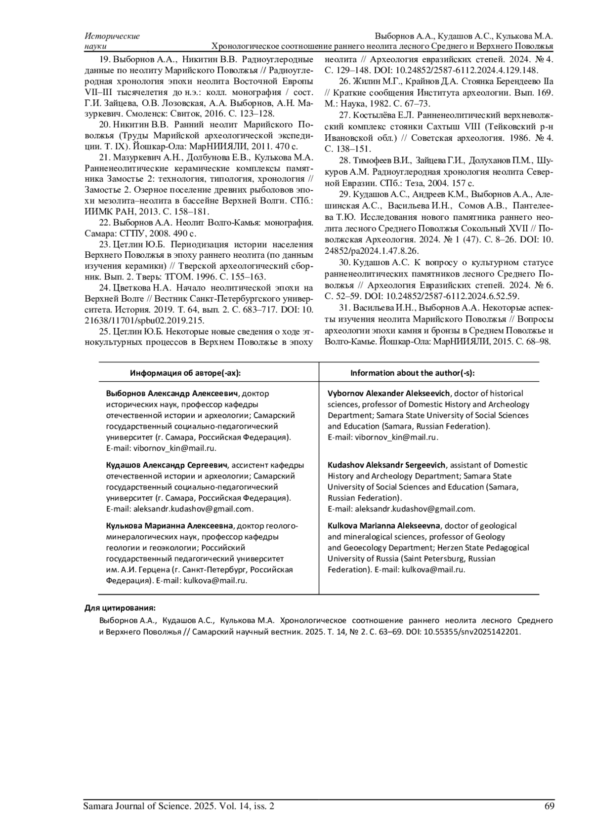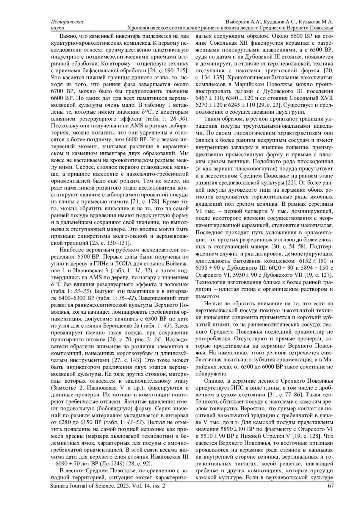 30. 	Кудашов А.С. К вопросу о культурном статусе ранненеолитических памятников лесного Среднего Поволжья // Археология Евразийских степей. 2024. № 6. С. 52-59. DOI: 10.24852/2587-6112.2024.6.52.59 EDN: AHGJKQ
