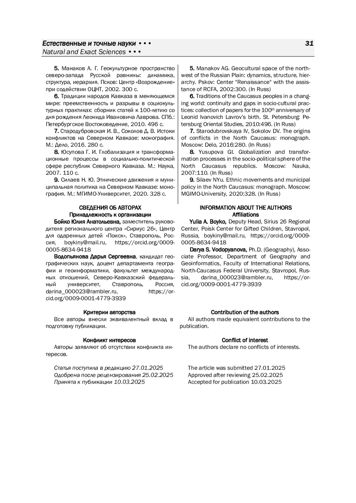 7. 	Стародубровская И. В., Соколов Д. В. Истоки конфликтов на Северном Кавказе: монография. М.: Дело, 2016. 280 с.