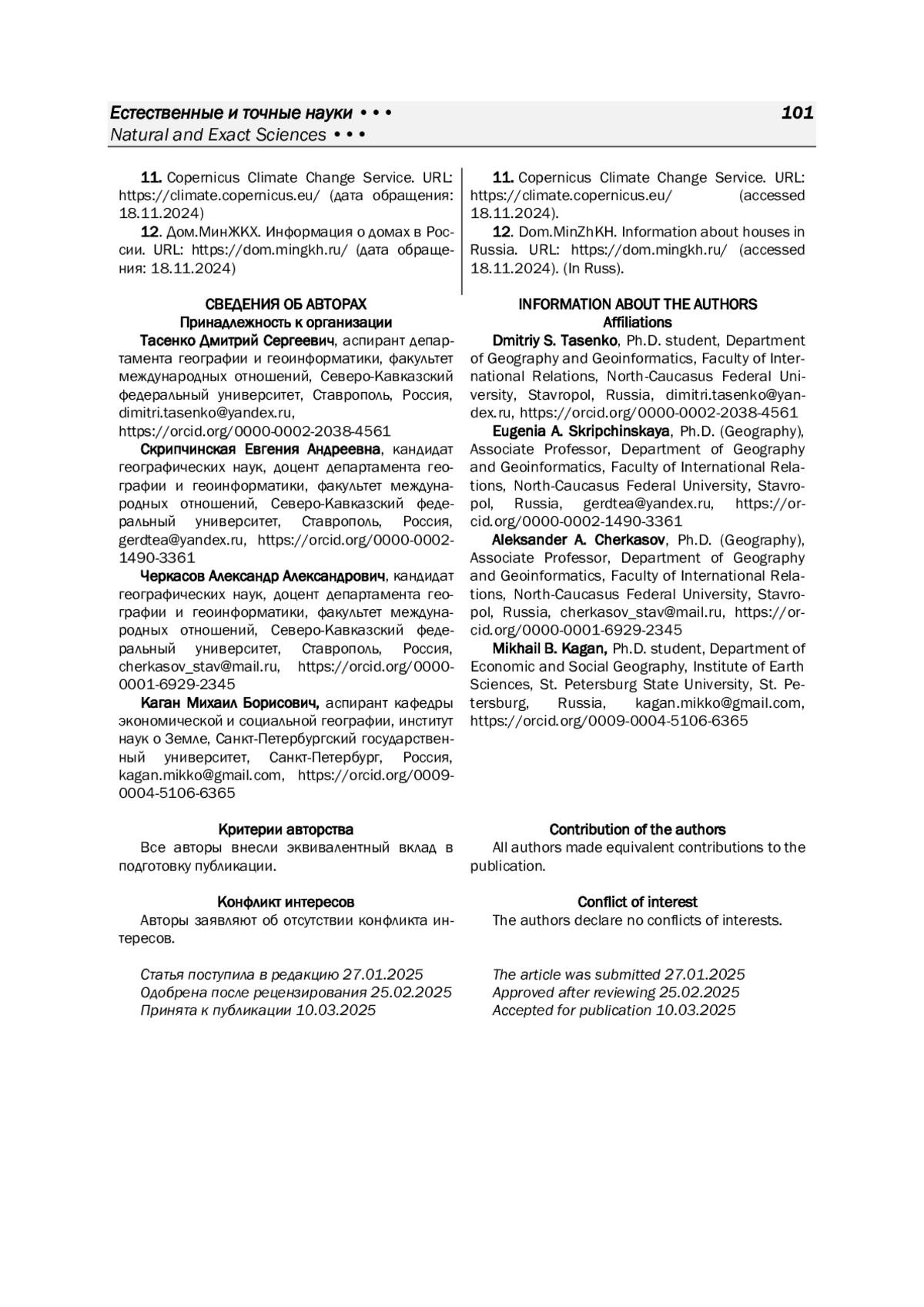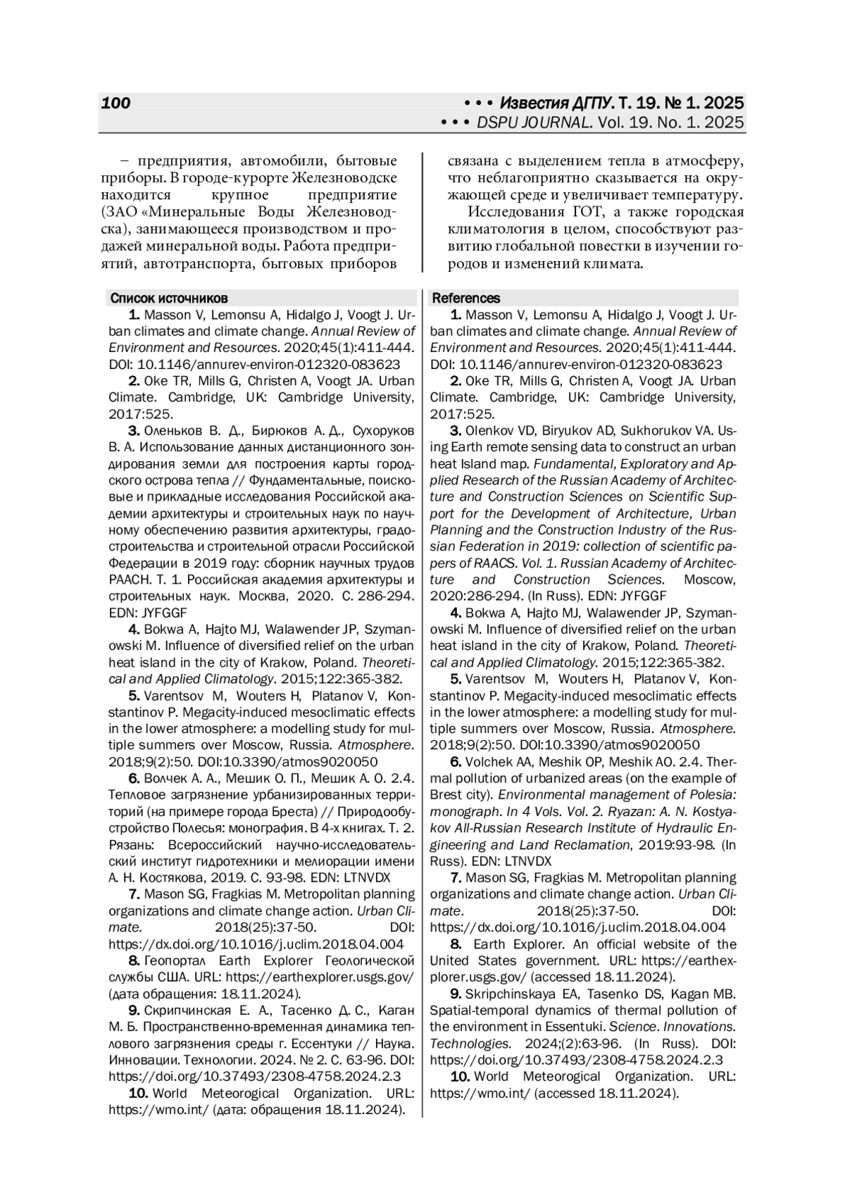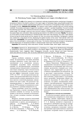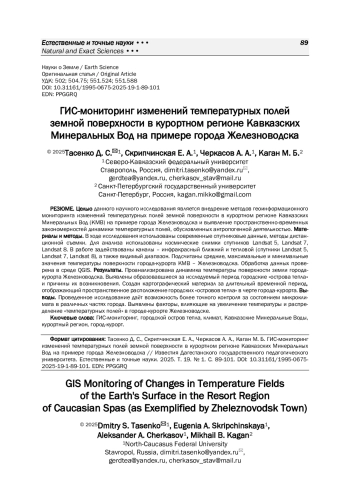 9. 	Скрипчинская Е. А., Тасенко Д. С., Каган М. Б. Пространственно-временная динамика теплового загрязнения среды г. Ессентуки // Наука. Инновации. Технологии. 2024. № 2. С. 63-96. DOI: 10.37493/2308-4758.2024.2.3