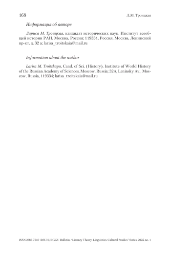 Статья представляет сравнительный анализ американской и российской глубинки на рубеже ХIХ и ХХ вв., основанный на работах общественного деятеля и писателя, помещика Тверской губернии П. А. Дементьева. Эмигрировав в 1881 г. в США, он жил в разных штатах и был хорошо знаком с провинцией обеих стран. В статьях, опубликованных под псевдонимом П. А. Тверской в российских журналах, главным образом в «Вестнике Европы», и книгах, Дементьев как бывший земец уделил особое внимание системе образования и местного самоуправления. Рассмотрев школьное дело в штатах Америки и в России, он пришел к неутешительным выводам о его состоянии в отечестве, где так и не был принят закон об обязательном начальном образовании. Столь же неблагоприятен взгляд на роль земства, ограниченного в полномочиях. Основываясь на американском опыте, Дементьев настаивал на необходимости реформ в этих областях, как и в других, в первую очередь аграрной, предлагая освободить крестьянство от гнета всевозможных платежей – причины бедности провинции и неграмотности ее населения. Различия американской и российской глубинки журналист объяснял поощрением частной инициативы в Америке и ее подавлением в России, призывая уничтожить бюрократические преграды на пути развития «общественной самодеятельности».