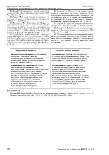 24. 	Поломошнов П.А., Поломошнов А.Ф. Патриотизм как педагогическая ценность // Современные научные исследования в АПК: актуальные вопросы, достижения и инновации: мат-лы всерос. (нац.) науч.-практ. конф. (Персиановский, 22 декабря 2022 г.). В 3 т. Т. III. Персиановский: Донской ГАУ, 2022. С. 74-79. EDN: CWOYMT