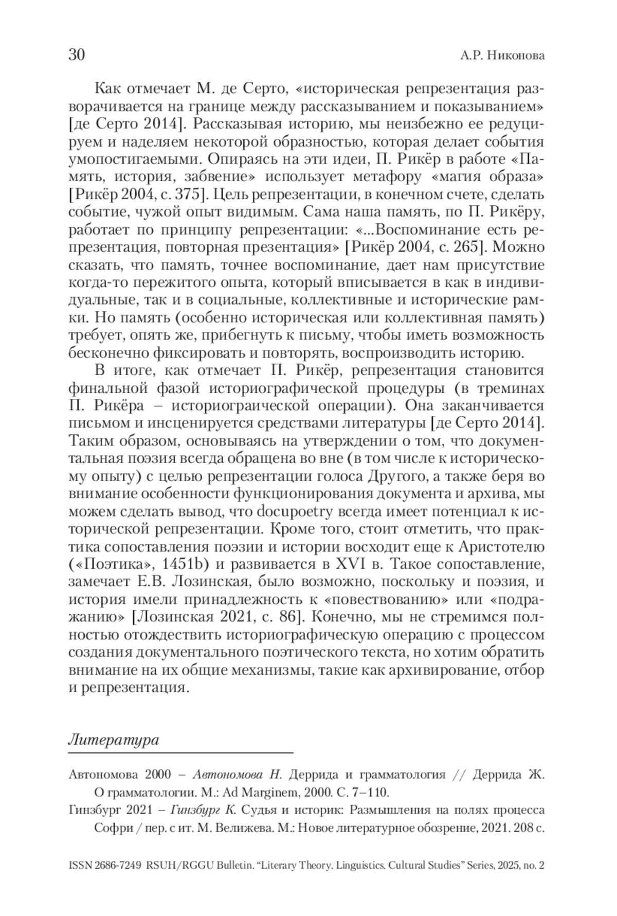 4. де Серто 2014 - де Серто М. Историографическая процедура: Письмо / пер. с фр. Б. Дубина // Неприкосновенный запас. 2014. № 95. URL: https://www.nlobooks.ru/magazines/neprikosnovennyy_zapas/95_nz_3_2014/article/10957 (дата обращения 15.11.2024).