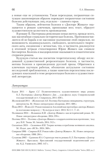 1. Буров 2011 - Буров С.Г. Полигенетичность художественного мира романа Б.Л. Пастернака «Доктор Живаго»: Дис. … д-ра филол. наук. Ставропольский государственный ун-т. Ставрополь, 2011. 650 с.