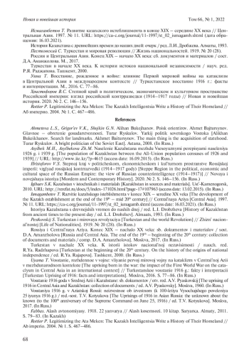 7. Исмагамбетов Т. Развитие казахского истеблишмента в конце ХIХ - середине ХХ века // Центральная Азия. 1997. № 11. URL: https://ca-c.org/journal/11-1997/st_02_ismagamb.shtml (дата обращения: 16.03.2021).