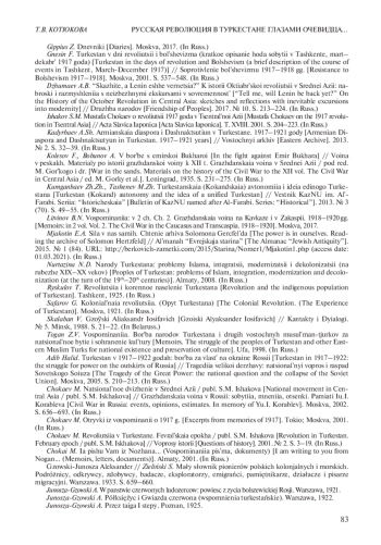 8. 	Гзовский А. Социальная революция в Туркестане: полумесяц и красная звезда (туркестанские воспоминания) / науч. ред. Т.В. Котюкова. М., 2021.