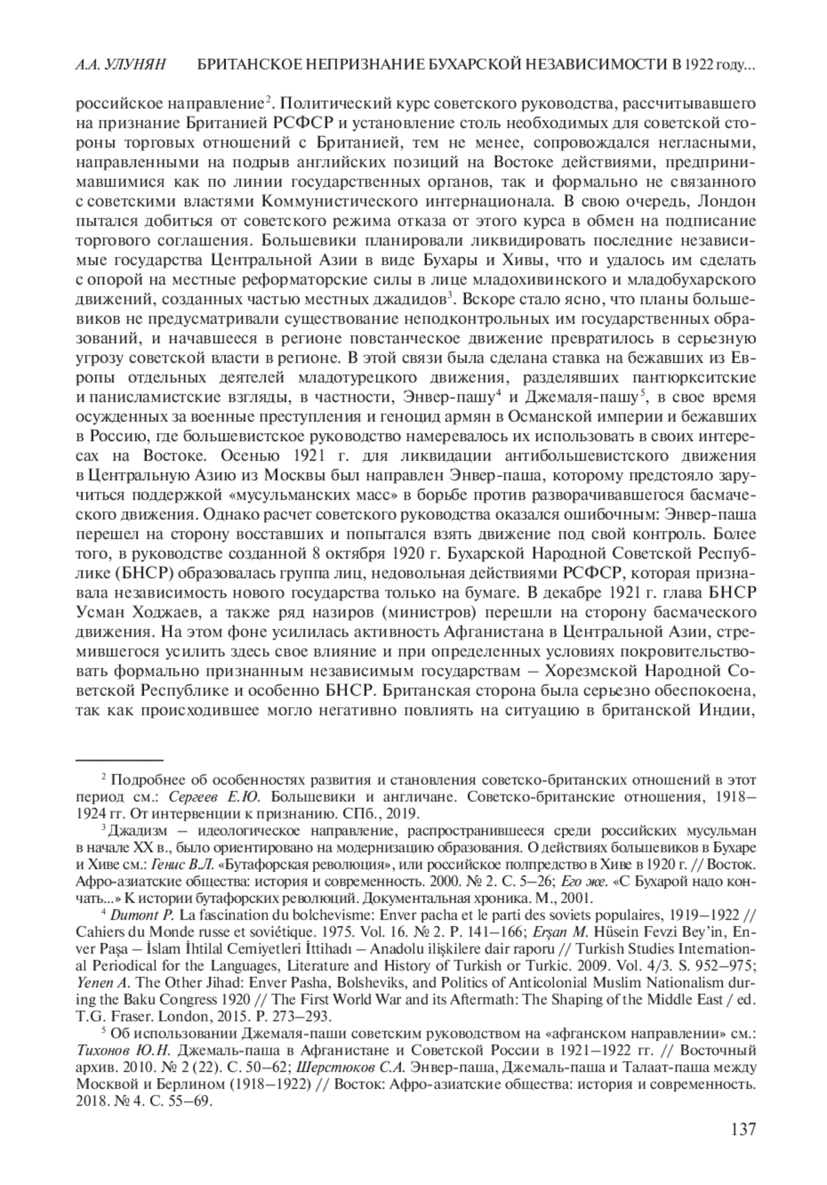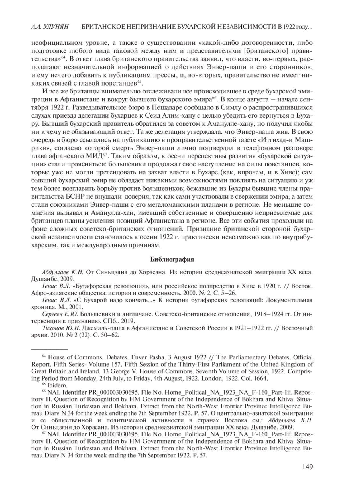 6. 	Улунян Ар.А. Туркестанский плацдарм. 1917-1922. Британское разведывательное сообщество и британское правительство. М., 2019.