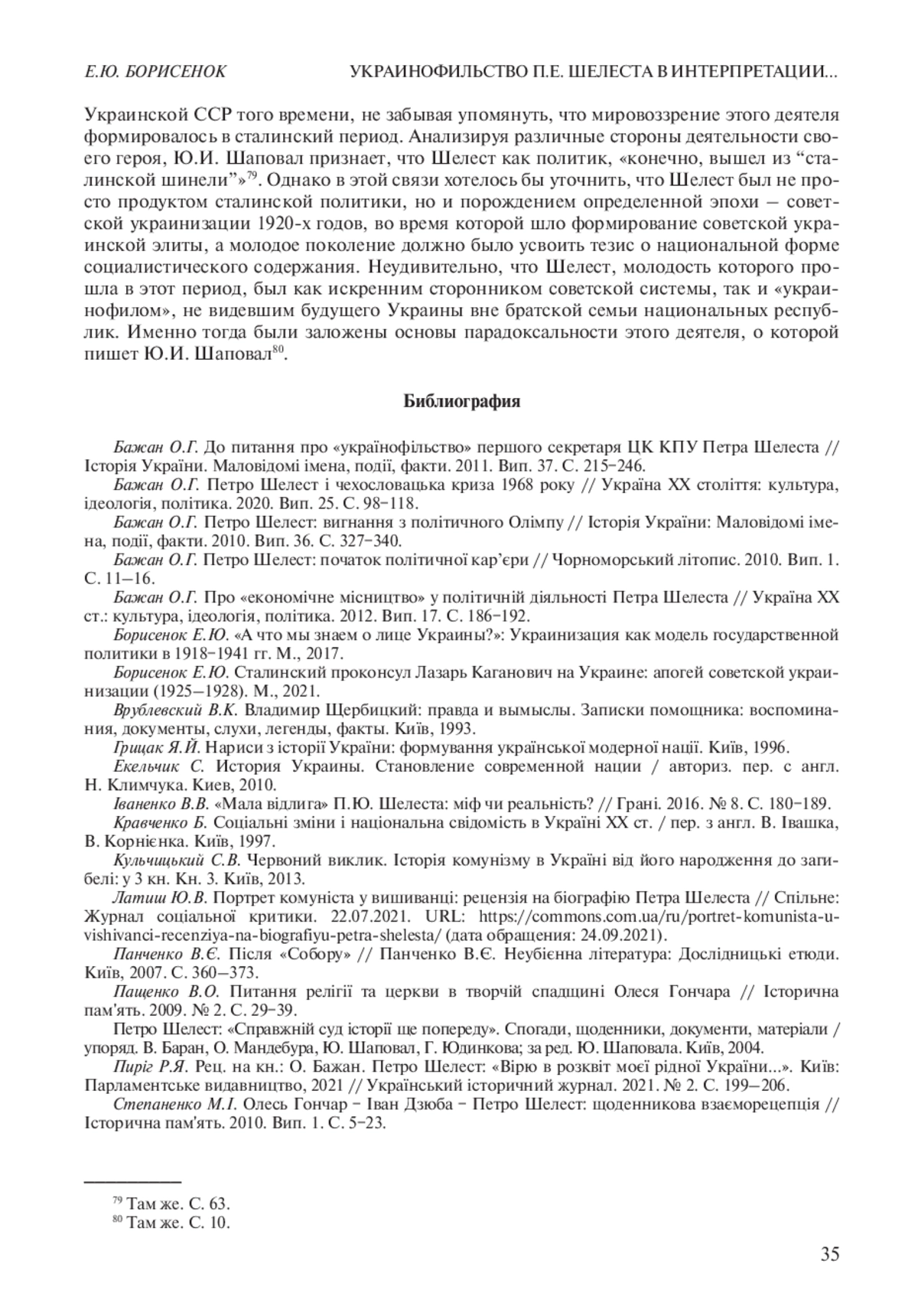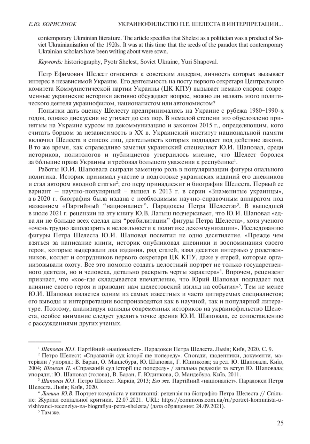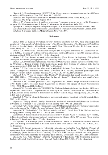 14. 	Латиш Ю.В. Портрет комунiста у вишиванцi: рецензiя на бiографiю Петра Шелеста // Спiльне: Журнал соцiальної критики. 22.07.2021. URL: https://commons.com.ua/ru/portret-komunista-u-vishivanci-recenziya-na-biografiyu-petra-shelesta/ (дата обращения: 24.09.2021).