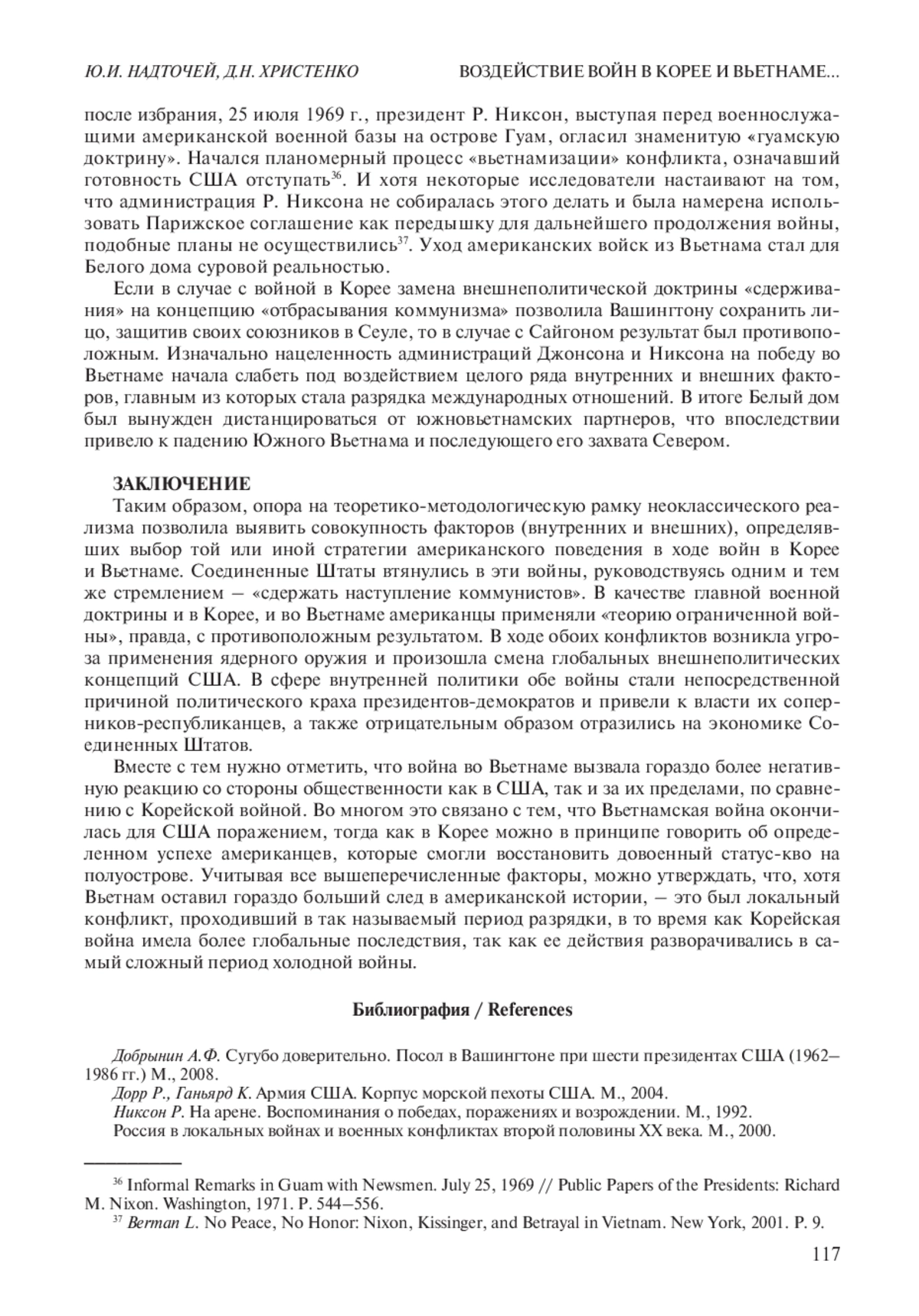 36. 	Suk Ch., Morrison J. A Comparative Study of the Korean War and the Vietnam War // Korea Observer. 1985. Vol. 16. № 3. P. 260-279.