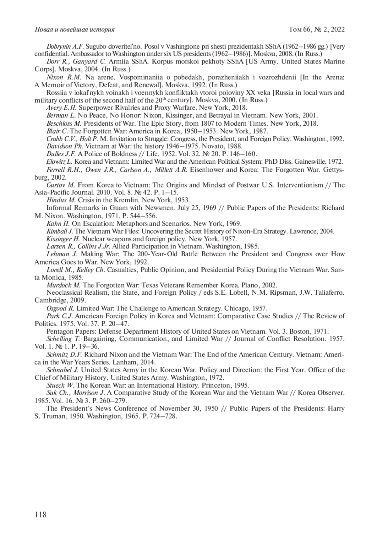30. 	Park C.J. American Foreign Policy in Korea and Vietnam: Comparative Case Studies // The Review of Politics. 1975. Vol. 37. P. 20-47.