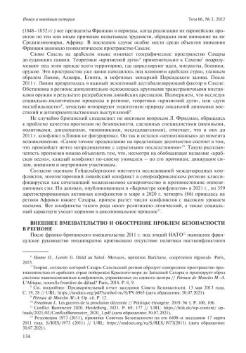 48. 	Le Drian: le sud de la Libye “est devenu un hub terroriste” // Le Point. 28.XII.2014. URL: https://www.lepoint.fr/monde/le-drian-le-sud-de-la-libye-est-devenu-un-hub-terroriste-28-12-2014-1892679_24.php (access date: 30.07.2021).