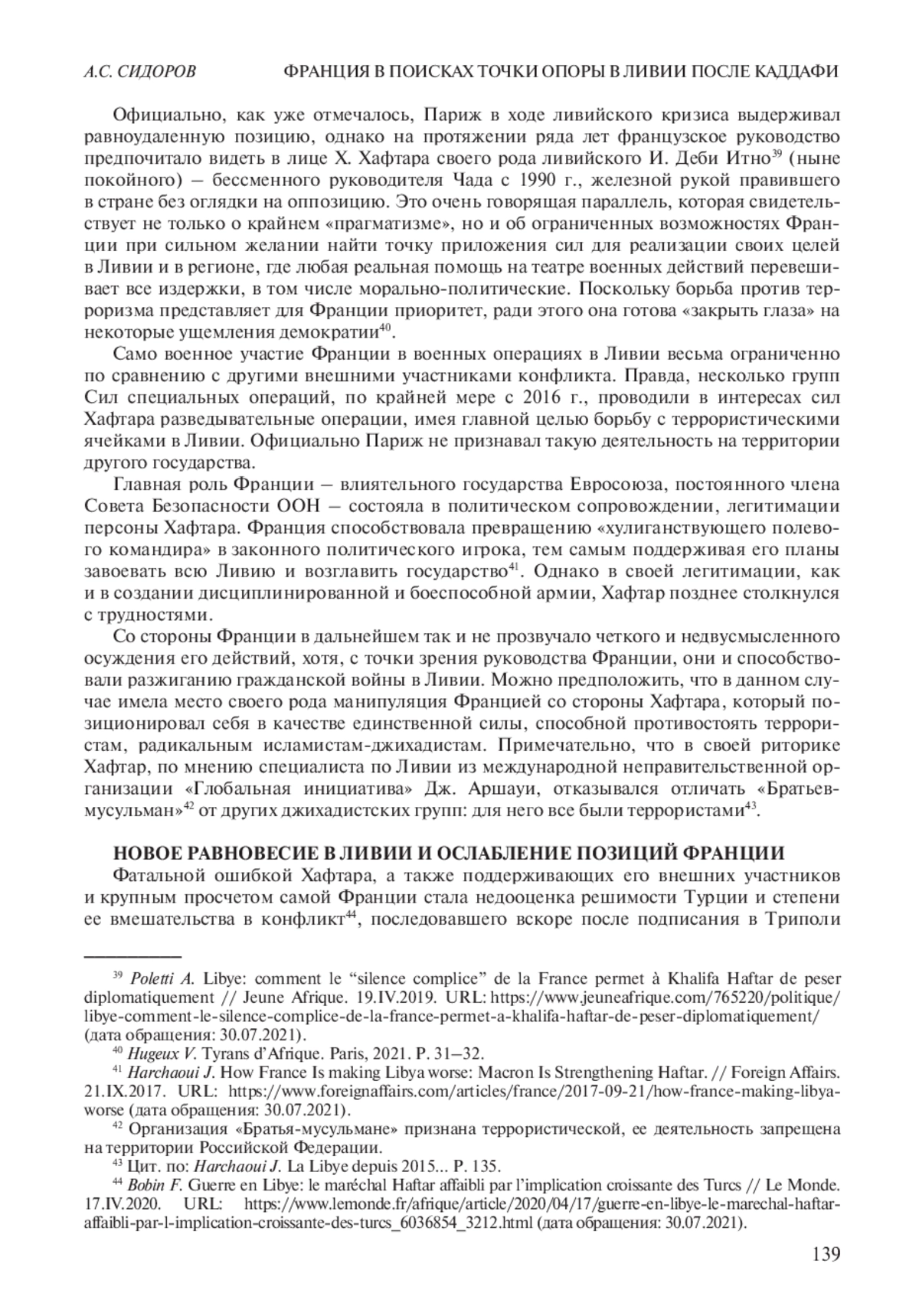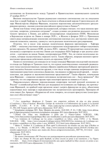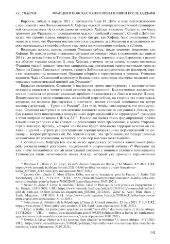 36. 	Gillon J. France-Libye: le maréchal Haftar, l’ami controversé de l’Élysée // Jeune Afrique. 18.III.2020. URL: https://www.jeuneafrique.com/mag/909987/politique/le-marechal-haftar-lami-libyen-controverse-de-lelysee/ (access date: 30.07.2021).