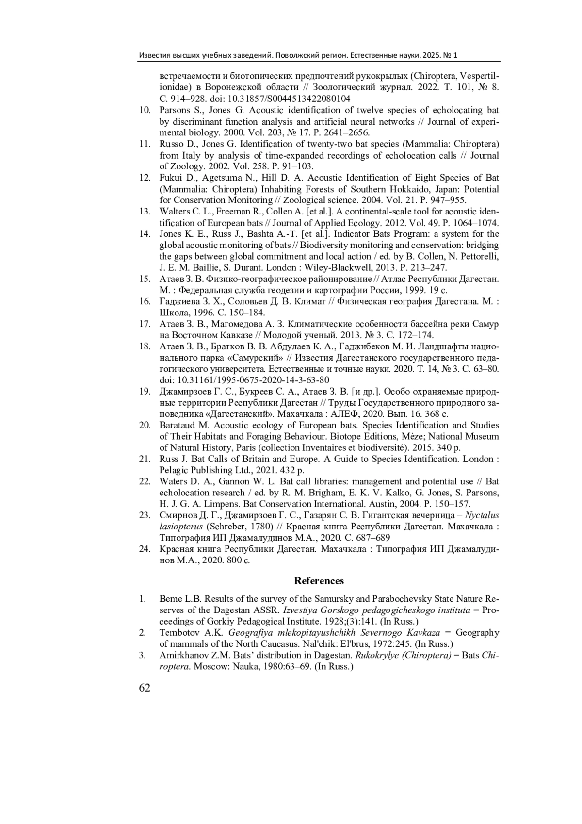 18. Атаев З. В., Братков В. В. Абдулаев К. А., Гаджибеков М. И. Ландшафты нацио-нального парка “Самурский” // Известия Дагестанского государственного педагогического университета. Естественные и точные науки. 2020. Т. 14, № 3. С. 63-80. DOI: 10.31161/1995-0675-2020-14-3-63-80