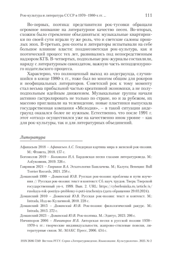Статья: Рок-культура и литература СССР в 1970–1980-х гг.: точки соприкосновения (2025)