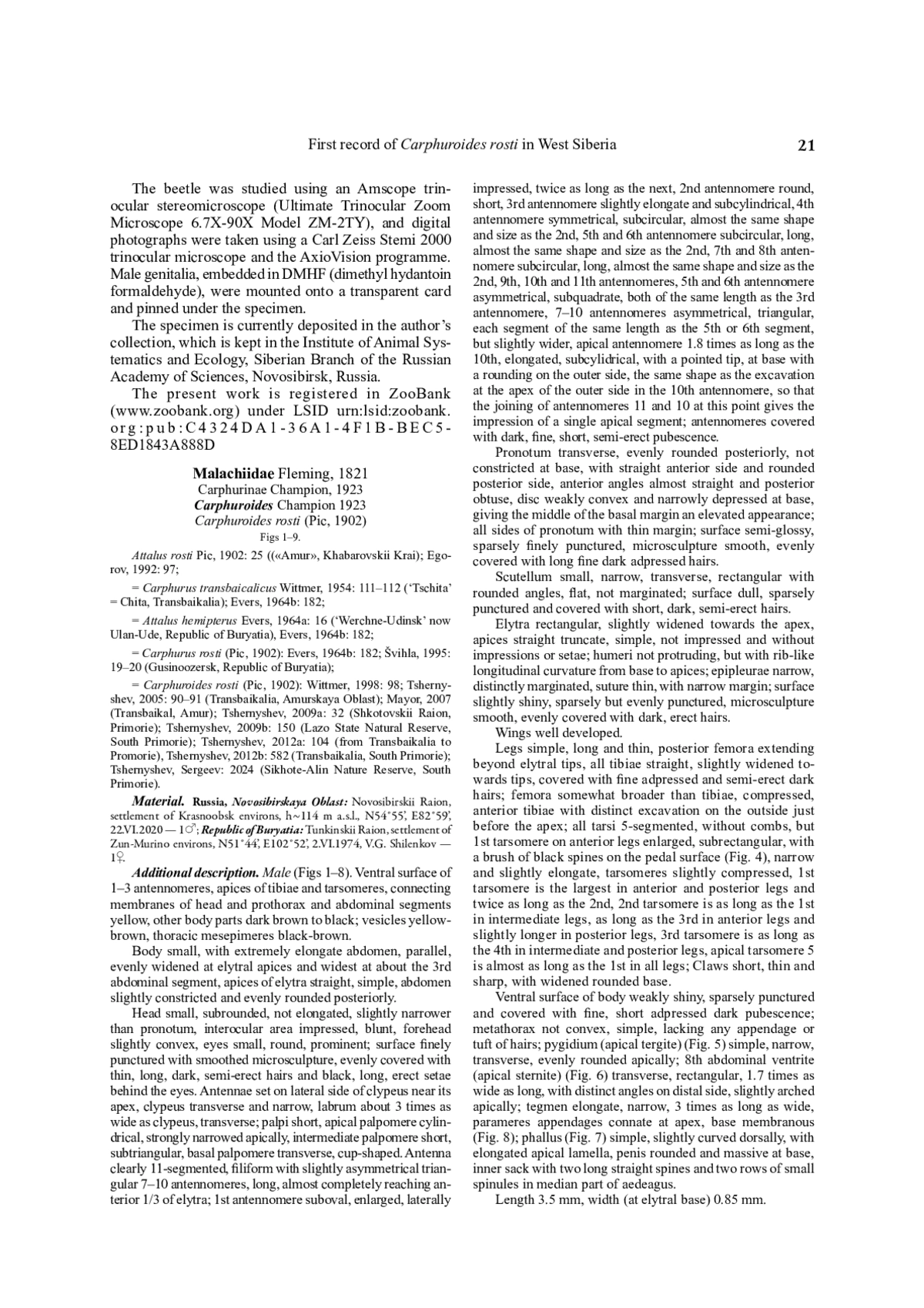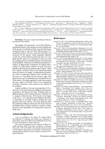 6. 	Švihla V. 1995. Review of the beetle families Cantharidae, Malachiidae and Oedemeridae (Insecta, Coleoptera) from Buryatia and adjacent regions // Siberian Naturalist. No.1. P.15-24.
