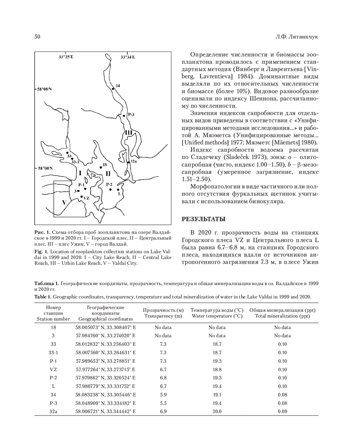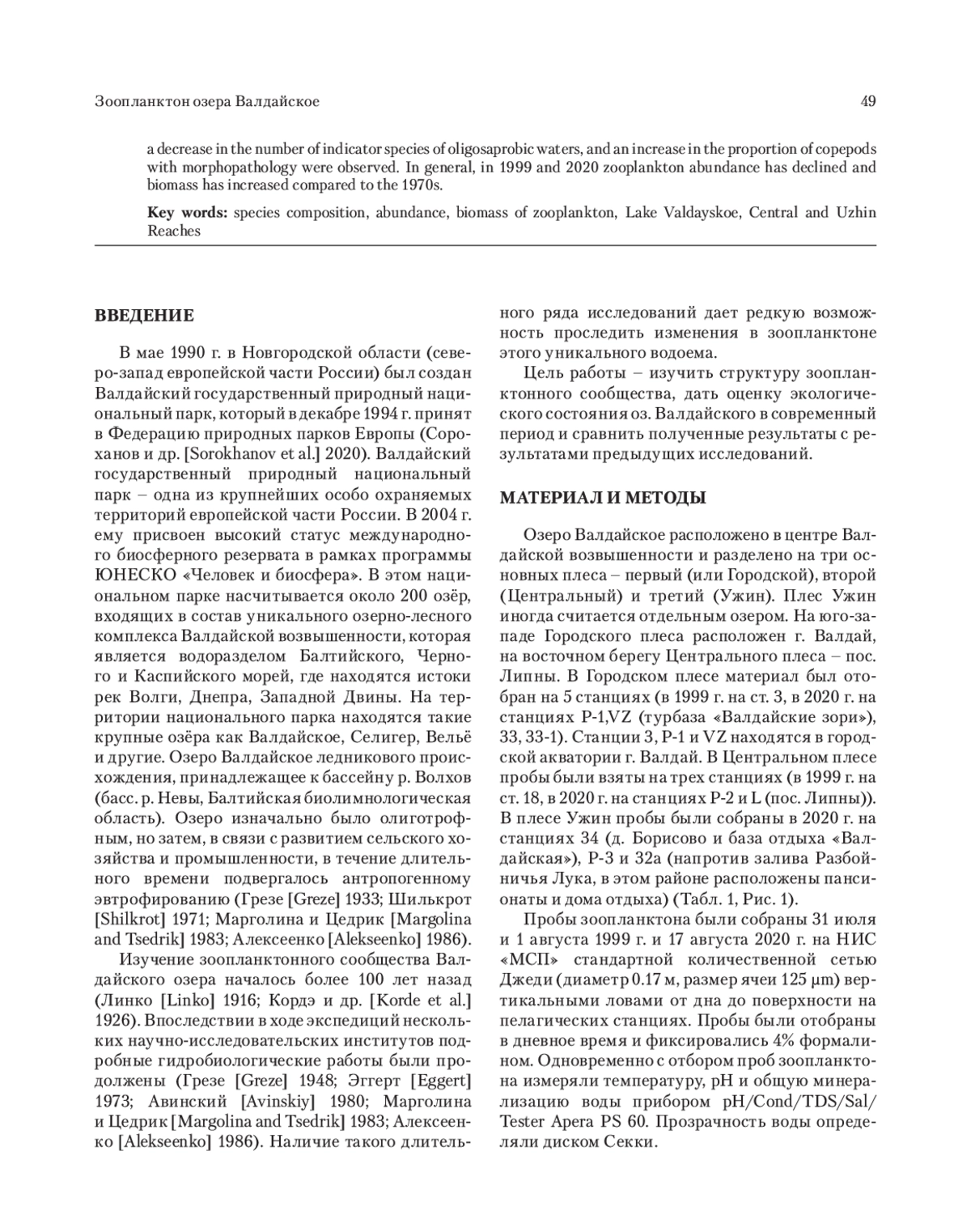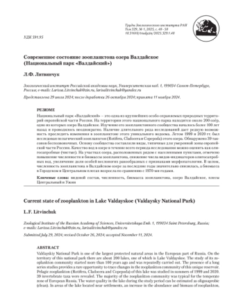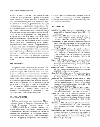 1. 	Avinskiy V.A. 1980. Dynamics of zooplankton in Lake Valdai. Fishery Studies of Inland Waters, 25: 11-18. [In Russian].