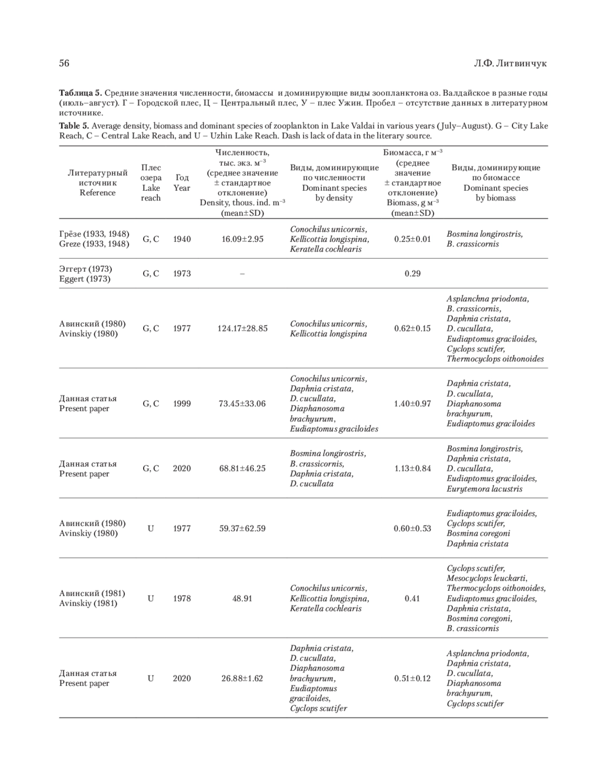 2. 	Avinskiy V.A. 1981. Zooplankton and its products in Lake Uzhin (Novgorod Region). Scientific Papers of GosNIORKh, 162-163: 149-163. [In Russian].