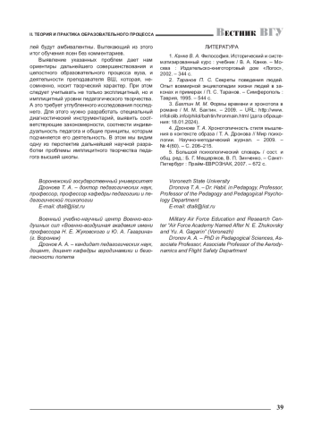4. 	Дронова Т. А. Хронотопичность стиля мышления в контексте образа / Т. А. Дронова // Мир психологии. Научно-методический журнал. - 2009. -№ 4(60). - С. 206-215. EDN: LDEQTV