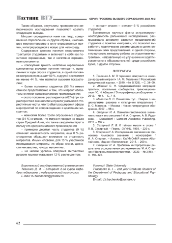 2. 	Абашин С. Н. Среднеазиатская миграция: практики, локальные сообщества, транснационализм / С. Н. Абашин // Этнографическое обозрение. -2012. - № 4. - С. 7-8. EDN: PCPDNV