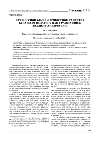 Гражданственность – один из социально значимых ориентиров развития Человека в России. Выращивание Человека-гражданина в условиях образовательной системы возможно лишь при участии Педагога-гражданина, что созвучно мнению К. Д. Ушинского о воспитании личности личностью [1]. Не случайно прошедший 2023 год был объявлен Указом Президента России В. В. Путина Годом педагога и наставника. И это можно рассматривать как знаменательное историко-педагогическое событие, произошедшее впервые за все годы существования в стране системы образования.