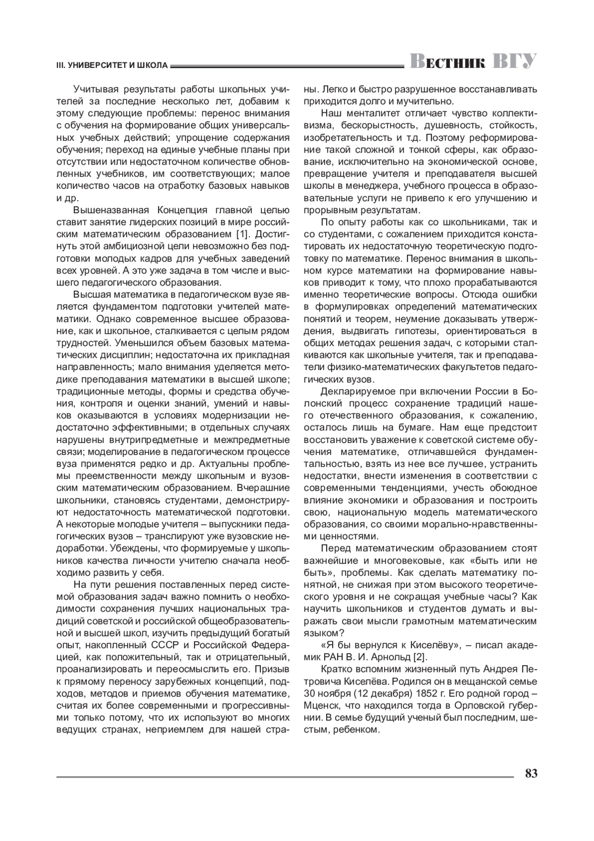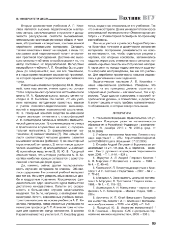5. 	Костенко И. П. Почему надо вернуться к Киселёву? / И. П. Костенко // Педагогика. - 2007. - № 7. - С. 77-83. EDN: NBYDDZ