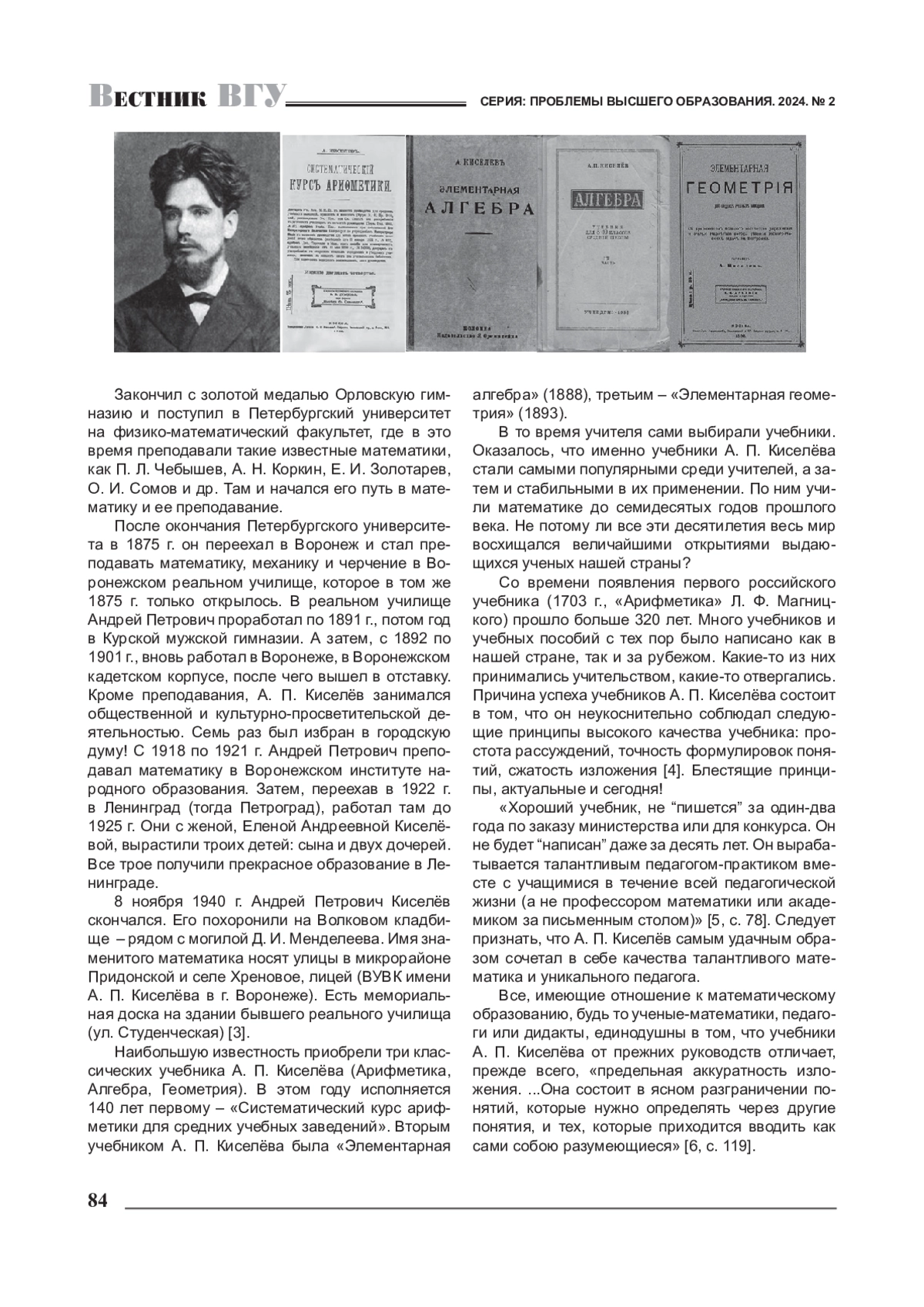 2. 	Учебники математики Киселева. Почему к ним надо вернуться? - URL: http://mediton.livejournal.com/42308.html (дата обращения: 07.02.2024).