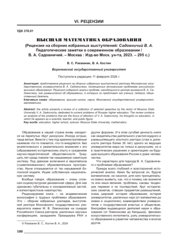 Представлена рецензия на сборник избранных выступлений ректора Московского государственного университета В. А. Садовничего, посвященных актуальным проблемам российского высшего образования. Рецензия содержит анализ проблем, находящихся в центре внимания В. А. Садовничего, его размышлений об образовании, в которых он предстает как ученый, педагог, общественный деятель.