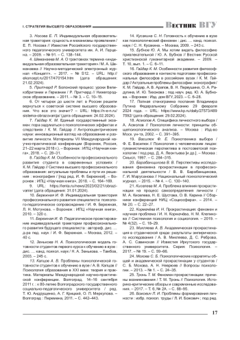 8. 	Гайдар К. М. Особенности профессионального развития студента в современных условиях / К. М. Гайдар // Система высшего профессионального образования: актуальные проблемы и пути их решения: монография / [под ред. И. Ф. Бережной]. - Воронеж: ИПЦ “Научная книга”, 2018. - С. 164-169. EDN: YXBVYT