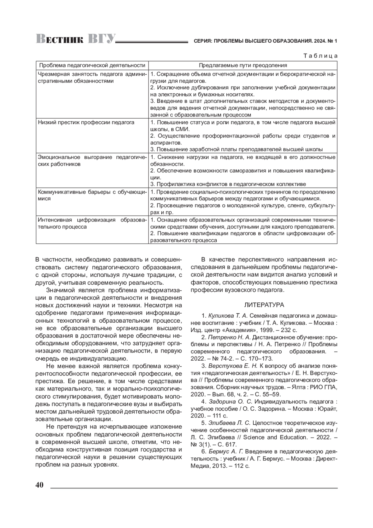 В настоящее время в связи с изменениями, которые происходят не только в обществе, но и в системе высшего образования, требования к преподавателям высшей школы значительно выросли. Педагоги сталкиваются с большим количеством проблем в профессиональной деятельности, связанных не только с выполнением своих обязанностей, но и с отношением общества к данной профессии [2].