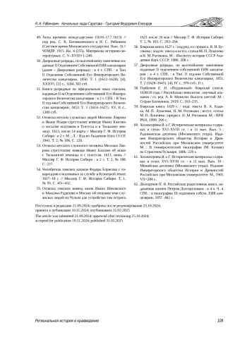 41. Вершинин Е. В. Воеводское управление в Сибири (XVII век). Екатеринбург: Муниципальный учебно-методический центр “Развивающее обучение”, 1998. 204 с. EDN: TUFZQX