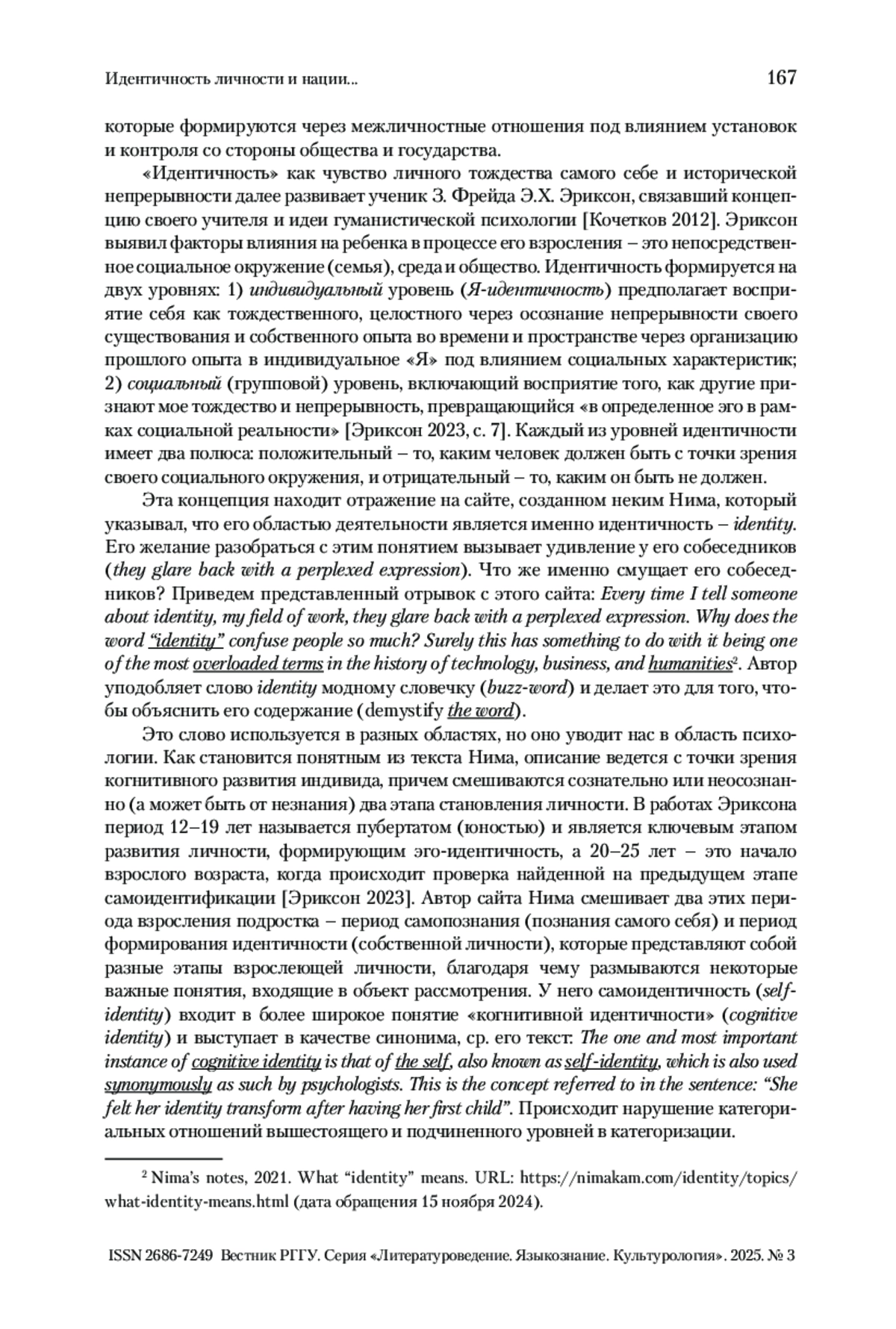 9. Манерко 2023 - Манерко Л.А. Самоидентификация личности как отражение трех категориальных сдвигов в семантике терминосферы // Когнитивные исследования языка. № 5 (56): Язык и знание: на пути получения знания о языке, человеке и мире: материалы Круглого стола по когнитивной лингвистике, 8-10 ноября 2023. М.: МГЛУ, 2023. С. 60-68.