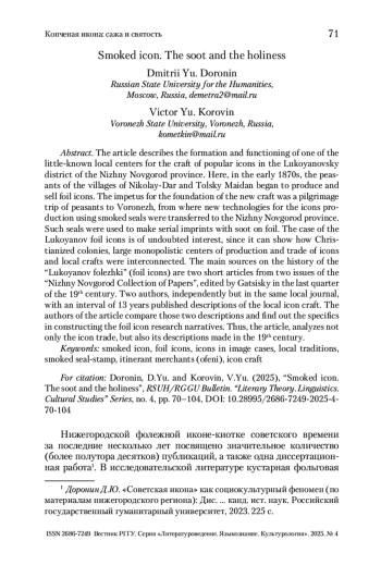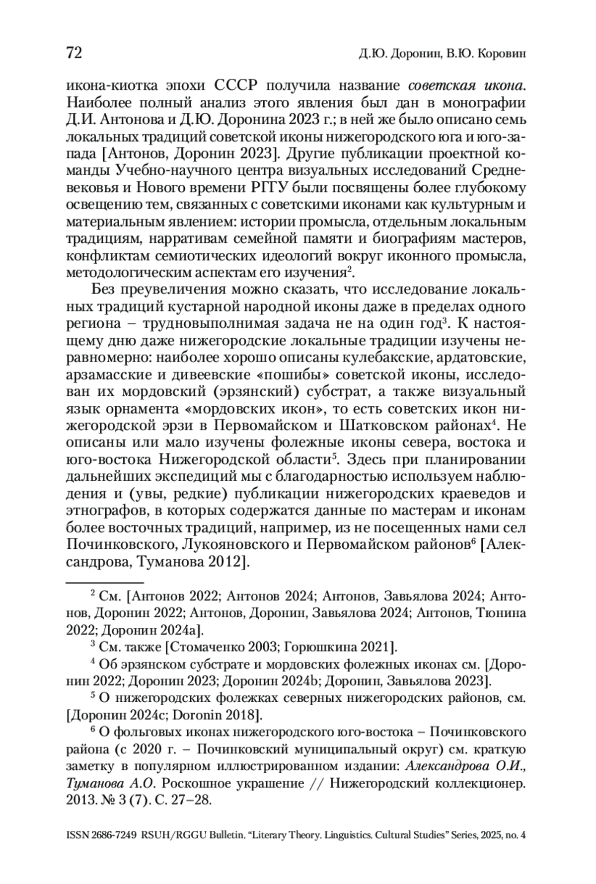 11. Доронин 2022 - Доронин Д.Ю. Советская икона нижегородского юго-запада: генезис и локальные традиции // Вестник РГГУ. Серия «Литературоведение. Языкознание. Культурология». 2022. № 4. С. 70-93.
