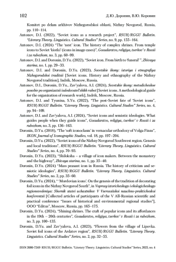 2. Антонов 2022 - Антонов Д.И. Советские иконы как исследовательский проект // Вестник РГГУ. Серия «Литературоведение. Языкознание. Культурология». 2022. № 9. С. 155-164.