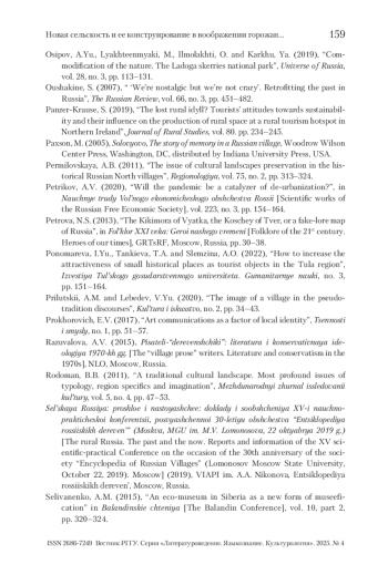 36. Пермиловская 2011 - Пермиловская А.Б. Проблема сохранения культурных ландшафтов сельских исторических поселений Русского Севера // Регионология. 2021. № 2 (75). С. 313-324.