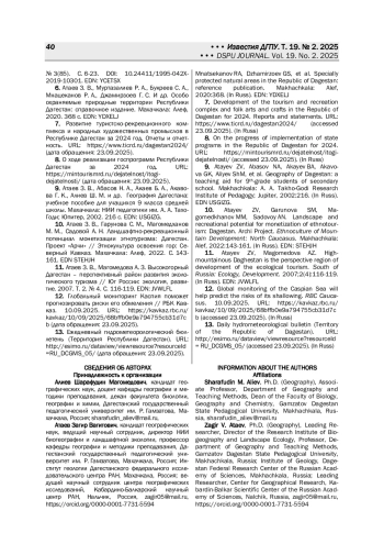 3. Атаев З. В., Пайзуллаева Г. П. Рекреационный потенциал природных районов Республики Дагестан: Оценка и перспективы использования. Махачкала: Алеф, 2014. 161 с.