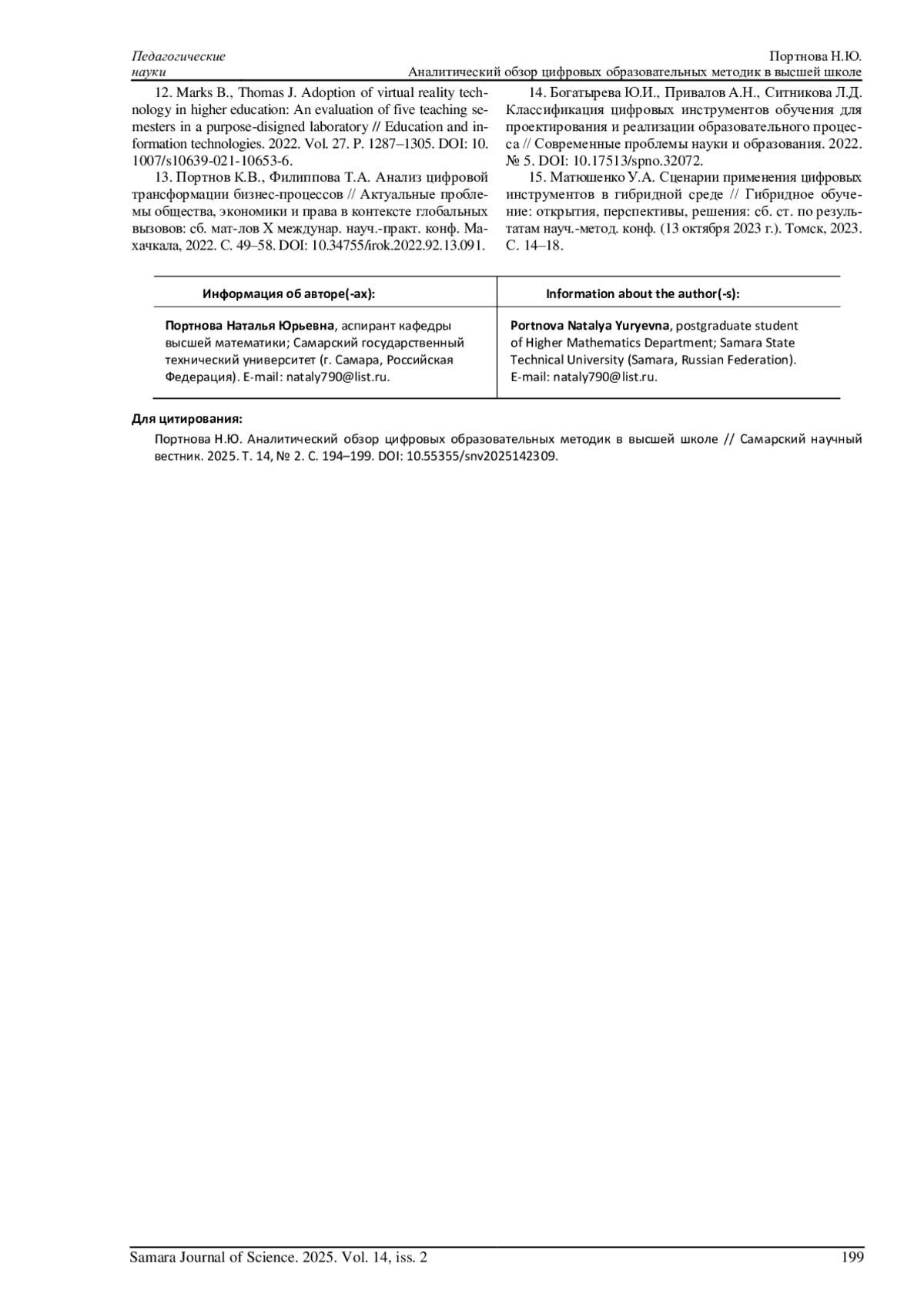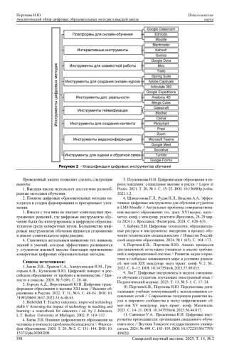 14. 	Богатырева Ю.И., Привалов А.Н., Ситникова Л.Д. Классификация цифровых инструментов обучения для проектирования и реализации образовательного процесса // Современные проблемы науки и образования. 2022. № 5. DOI: 10.17513/spno.32072 EDN: ZABAFR