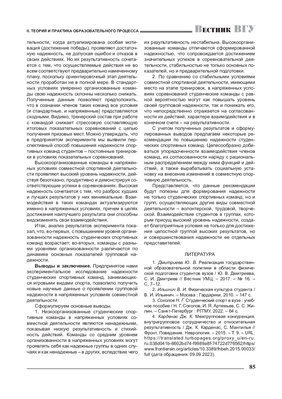 12. 	Демин И. В. Социально-психологические условия надежности группы в совместной спортивной деятельности: дис.. канд. психол. наук / И. В. Демин. - Курск, 2022. - 145 с. EDN: TDVYMS