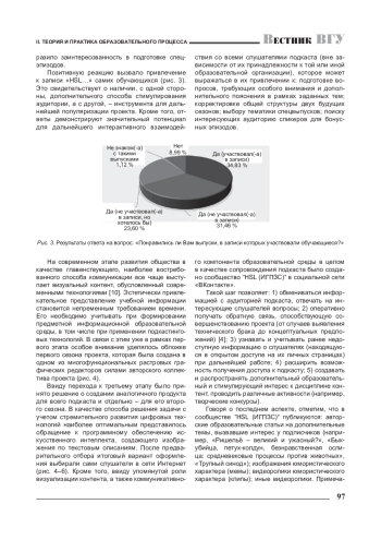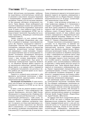 7. 	Петрова Е. Ю. Использование подкастов в образовательном процессе / Е. Ю. Петрова // Вестник МГПУ. Серия: Филология. Теория языка. Языковое образование. - 2013. - № 2(12). - С. 96-101. EDN: REVTKD