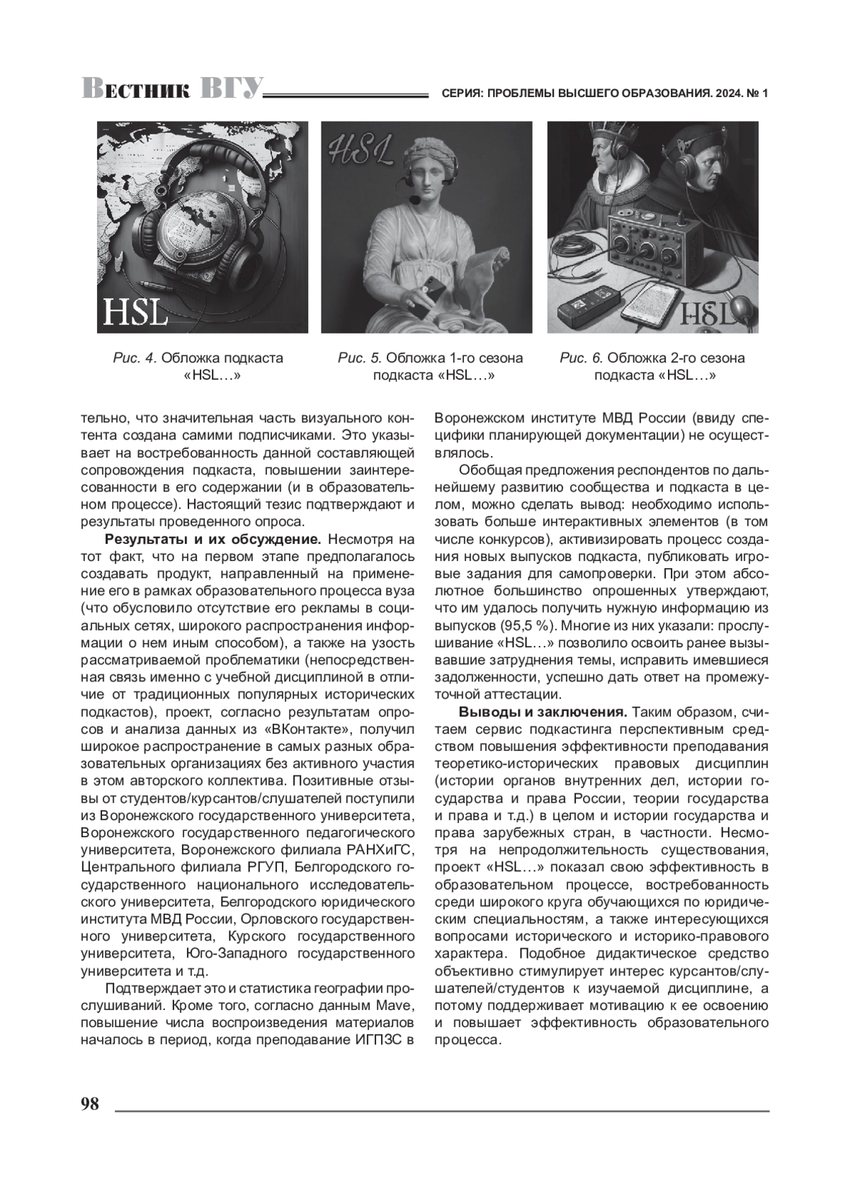 Несмотря на тот факт, что на первом этапе предполагалось создавать продукт, направленный на применение его в рамках образовательного процесса вуза (что обусловило отсутствие его рекламы в социальных сетях, широкого распространения информации о нем иным способом), а также на узость рассматриваемой проблематики (непосредственная связь именно с учебной дисциплиной в отличие от традиционных популярных исторических подкастов), проект, согласно результатам опросов и анализа данных из «ВКонтакте», получил широкое распространение в самых разных образовательных организациях без активного участия в этом авторского коллектива. Позитивные отзывы от студентов/курсантов/слушателей поступили из Воронежского государственного университета, Воронежского государственного педагогического университета, Воронежского филиала РАНХиГС, Центрального филиала РГУП, Белгородского государственного национального исследовательского университета, Белгородского юридического института МВД России, Орловского государственного университета, Курского государственного университета, Юго-Западного государственного университета и т. д.