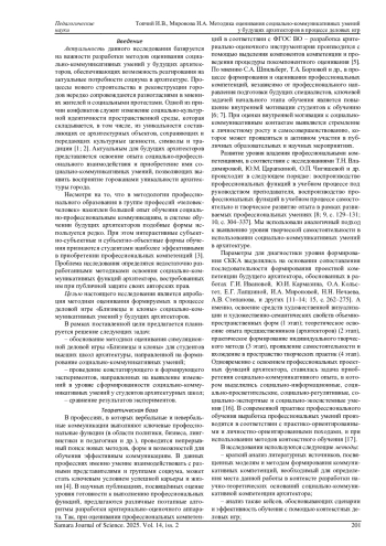 3. 	Сериков В.В., Топчий И.В. Оценка будущими архитекторами процесса становления их инверсивно-коммуникативной компетенции // Образование и общество. 2023. № 2 (139). С. 78-94. EDN: FGSNQZ