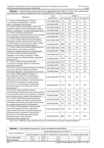 Цель статьи состоит в обосновании и апробации методики проведения и оценивания социально-коммуникативных умений, формируемых с помощью деловых игр на примере игры «Близнецы и клоны». Разработка анкеты, выявляющей уровень сформированности требуемых умений, проводилась на основании анализа научных публикаций, посвящённых созданию критериально-оценочного аппарата и специфике психологических этапов обучения будущих архитекторов. Были предложены критерии оценивания уровня сформированности социально-коммуникативных умений в соответствии с тремя этапами их формирования: выявление мотивации к осуществлению социально-коммуникативных практик в архитектурном проектировании (1 этап); наличие опыта включения социально-профессионального взаимодействия в учебное проектирование при участии преподавателя (2 этап); наличие опыта самостоятельного включения социально-профессионального взаимодействия в учебное проектирование (3 этап). В эмпирических исследования приняли участие более 80 студентов архитектурного факультета Орловского государственного университета имени И. С. Тургенева. Сравнение результатов констатирующего и формирующего экспериментов продемонстрировали эффективность разработок. Деловая игра привела к значительному (на 15-20%) улучшению социально-коммуникативных навыков у 90% участников, особенно в части мотивации к профессиональному общению и опыта использования его в учебных проектах. В устных опросах студенты также положительно оценивают новый опыт. Научная новизна работы заключается в том, что впервые была предложена поэтапная система оценивания социально-коммуникативных умений архитектора, проведено сравнение уровня владения социально-коммуникативными умениями архитектора до и после интеграции контекстной деловой игры в учебный процесс. В развитии исследования планируется расширение интеграции социально-коммуникативных практик в процесс профессионального обучения студентов, освоение успешного опыта архитекторов и приобретение творческой самостоятельности при использовании социально-профессиональных коммуникаций в архитектурной деятельности.
