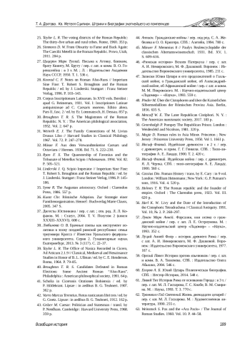 28. Konrad C. F. Notes on Roman Also-Runs // Imperium Sine Fine: T. Robert S. Broughton and the Roman Republic / ed. by J. Linderski. Stuttgart: Franz Steiner Verlag, 1996. P. 103-143.