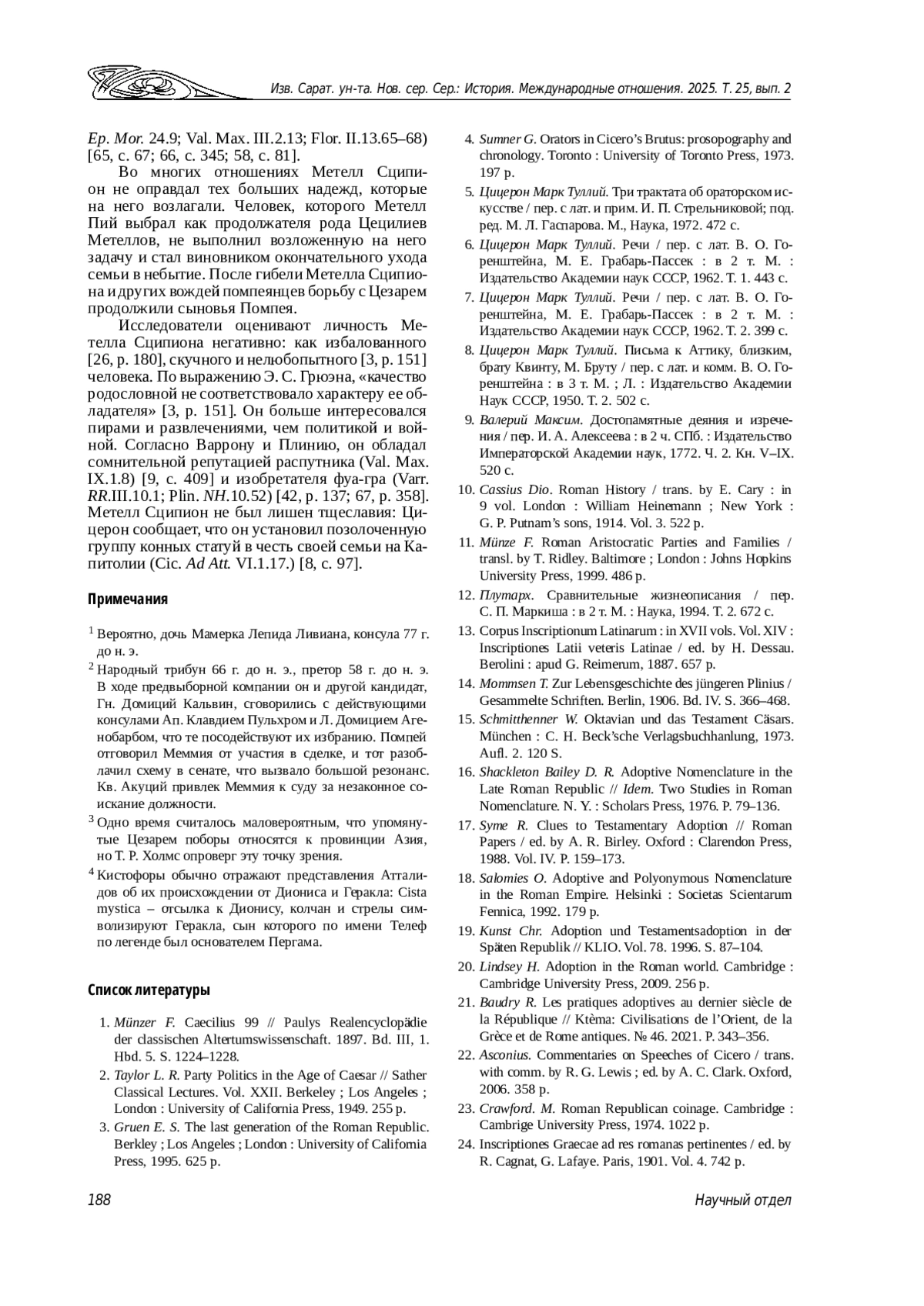 34. Linderski J. Q. Scipio Imperator // Imperium Sine Fine: T. Robert S. Broughton and the Roman Republic / ed. by J. Linderski. Stuttgart: Franz Steiner Verlag, 1996. P. 145-186.